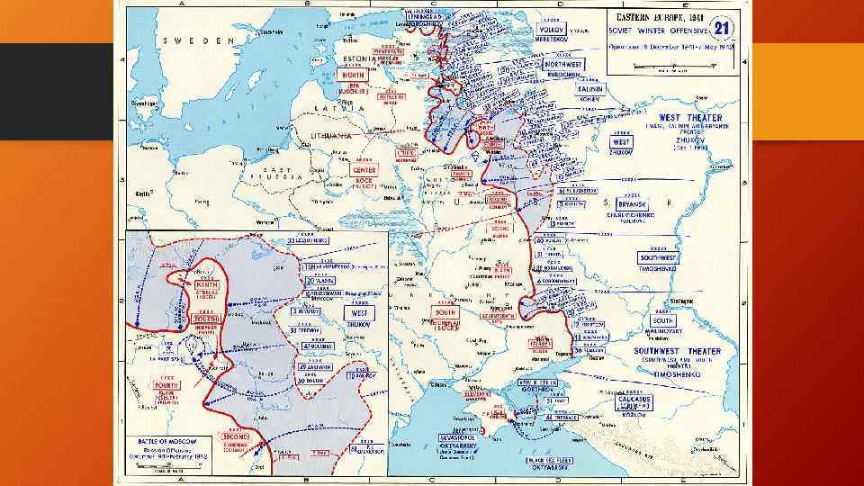 30. 09 – 4. 12 – Оборона Москвы • В ходе обороны мы проводим следующие операции: Орловско-Брянская, Вяземская, Можайско. Малоярославецкая, Калининская, Тульская, Клинско-Солнечногорская и Наро-Фоминская