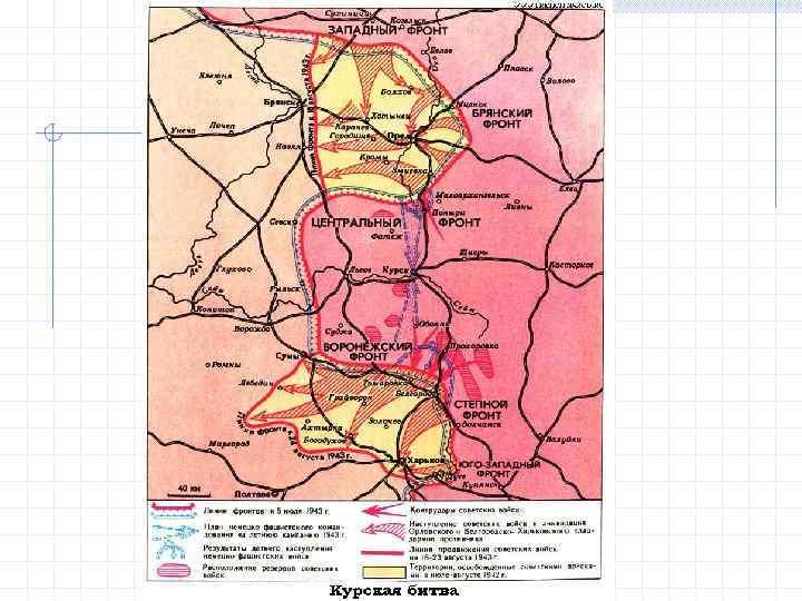 Боевые действия на фронтах 5 июля - 23 августа 1943 года - Курская битва. Завершение коренного перелома в ходе войны n n Курская оборонительная операция (5 -23 июля); Орловская (12 июля - 18 августа) и Белгородско. Харьковская (3 -23 августа) наступательные операции Соотношение сил и средств к началу Курской оборонительной операции (5 июля 1943 года) Силы и средства РККА Вермахт Соотношение Личный состав (тыс. чел. ) 1336 свыше 900 1, 4: 1 Орудия и минометы 19100 около 10000 1, 9: 1 Танки и САУ 3444 2733 1, 2: 1 Самолеты 2172 около 2050 1: 1