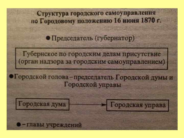 Городская реформа начала готовиться в 1862 г. , но из-за покушения на Александра II ее осуществление задержалось. «Городовое положение» было принято в 1870 г. Высшим органом городского самоуправления оставалась Городская дума. Выборы проводились по трем куриям. Курии формировались на основе имущественного ценза. Составлялся список избирателей по убыванию размера платимых ими городских налогов. Каждая курия платила 1/3 налогов. Первая курия была самой богатой и малочисленной, третья – самой бедной и многочисленной. Как вы считаете: городские выборы проводились на всесословной или бессословной основе? ?