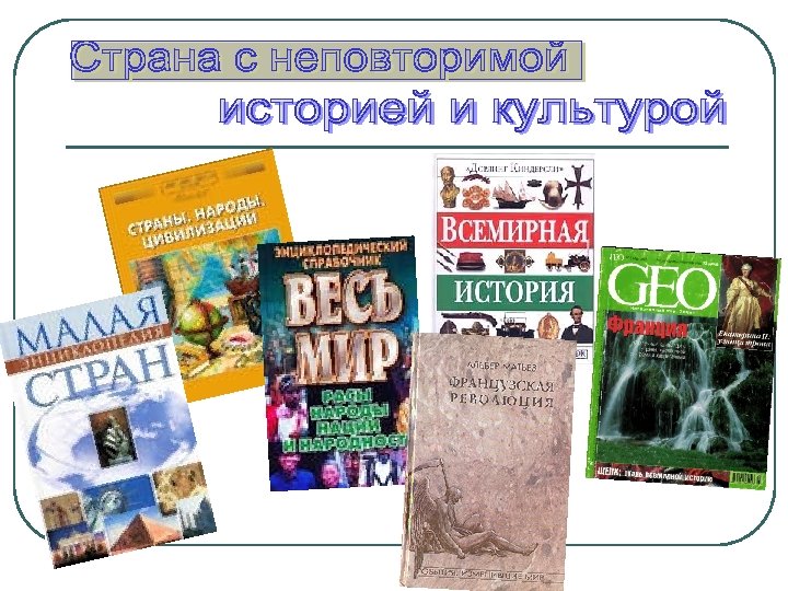 l. Год «России–Франции 2010» l l это уникальная воз можность для жите лей обеих стран познакомиться со страной партнером, обогатить свои знания о ней, понять ее историю и культуру. Цель нашей выставки представить имеющу юся литературу о Франции этой удивительной стране.