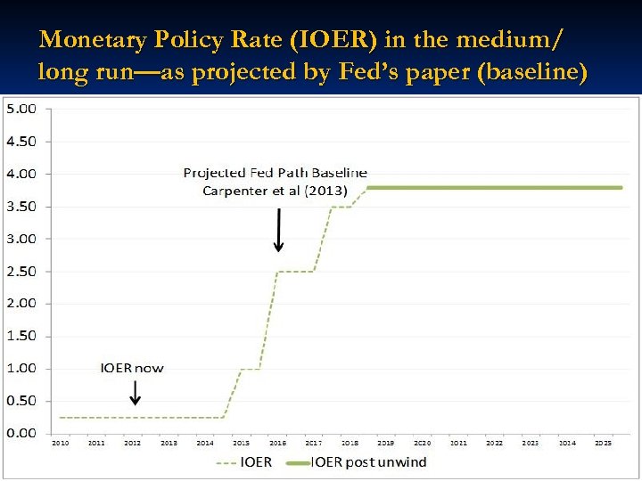 Monetary Policy Rate (IOER) in the medium/ long run—as projected by Fed’s paper (baseline)