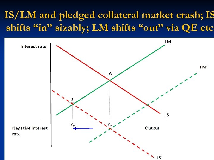IS/LM and pledged collateral market crash; IS shifts “in” sizably; LM shifts “out” via QE etc