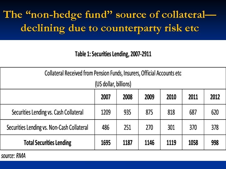 The “non-hedge fund” source of collateral— declining due to counterparty risk etc