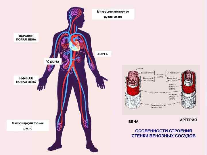 внутренняя яремная вена подключичная вена правая плечеголовная вена левая плечеголовная вена верхняя полая вена непарная в. полунепарная в. нижняя полая вена правая общая подвздошная в. левая общая подвздошная в. внутренняя подвздошная в. наружная подвздошная в.