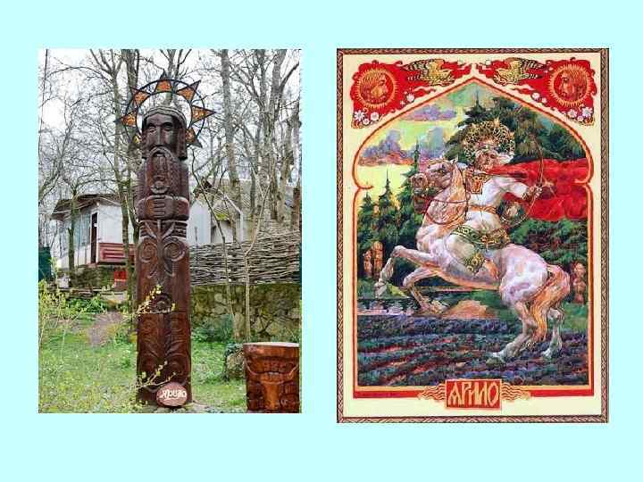 Ярило - бог восходящего солнца и весенних гроз, пробуждающих землю и людей. Он несёт свет и тепло. Ярило - носитель жизнетворящего начала в природе и человеке «Идёт удалый бог, Ярило-молодец, И снежный саван рвёт по всей Руси широкой! Идёт могучий бог, враг смерти тусклоокой, Ярило, жизни царь и властелин сердец' Из мака алого сплетён его венец, В руках — зелёной ржи трепещет сноп высокий, Глаза как жар горят, румянцем пышут щеки, Идёт весёлый бог, цветов и жатв отец!»