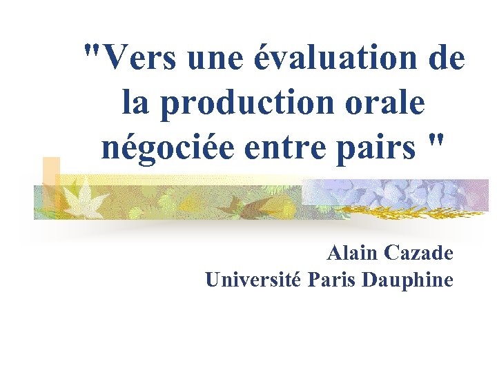 "Vers une évaluation de la production orale négociée entre pairs " Alain Cazade Université Paris Dauphine