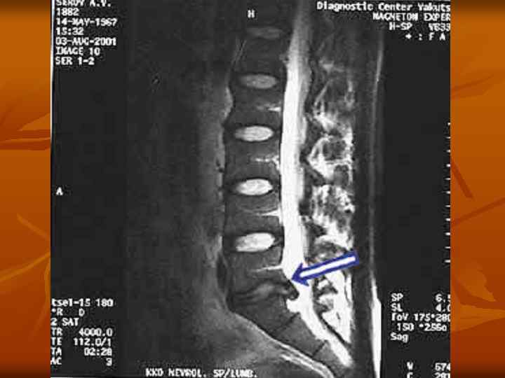 МРТ (магнитно - резонансная томография) признаки грубого дегенеративного разрушения диска L 4 -L 5, и n формирование грыжи диска L 5 S 1. n