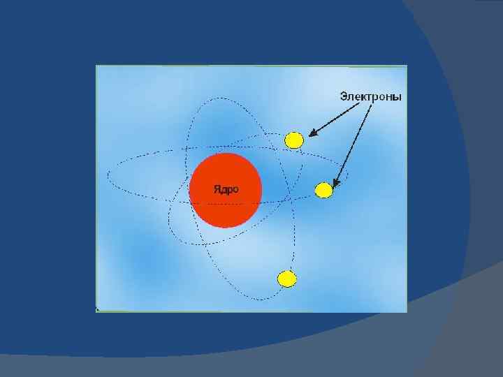 - - - Атом (от греч. «неделимый» ) До конца 19 в. считался мельчайшей структурной единицей материи. После открытия элементарных частиц – создана планетарная модель атома (Резерфорд) на основе принципов классической механики. Современная модель атома – квантово-механическая (Бор): положительно заряженное ядро окружено электронными облаками; атом в целом имеет нейтральный заряд, т. к. заряды протонов и нейтронов компенсируют друга, а их число в атоме одинаково; при движении по орбите ē не излучает энергии, при переходе на другую орбиту излучает ее порциями (квантами).