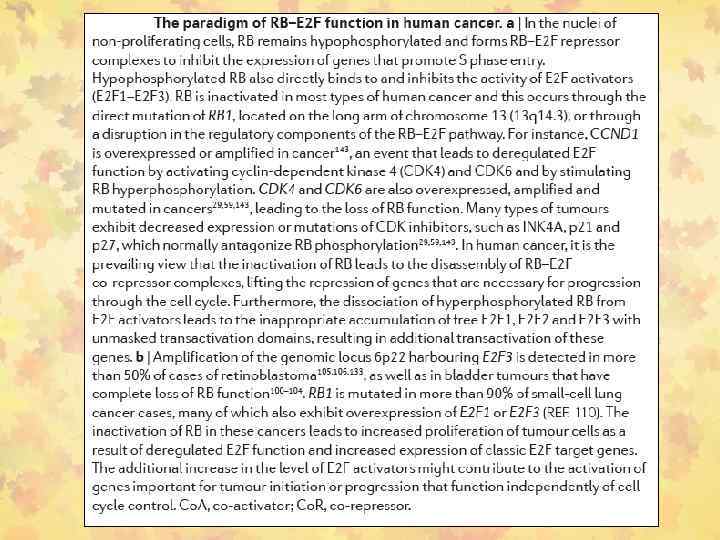 2. Раковые супрессорные гены или онкосупрессоры • RB • р53 (ТР 53) Развитие рака происходит из-за потери функции РСГ