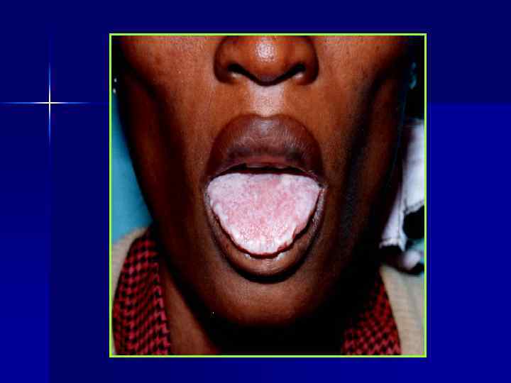Оппортунистические поражения ЖКТ у ВИЧ-инфицированных n Поражение ротовой полости: – – n n Candida albicans – кандидоз Herpes simplex virus – афтозно-язвенный гингивостоматит Cytomegalovirus – афтозно-язвенный стоматит ВЭБ, ВПЧ – «волосатая» лейкоплакия Поражение пищевода: эзофагит, вызванный Candida spp. , Cytomegalovirus, HSV Поражение кишечника: цитомегаловирусный энтероколит, вызванный ВПГ, сальмонеллез (часто Salmonella typhimurium), криптоспоридиоз, микроспоридиоз и др.