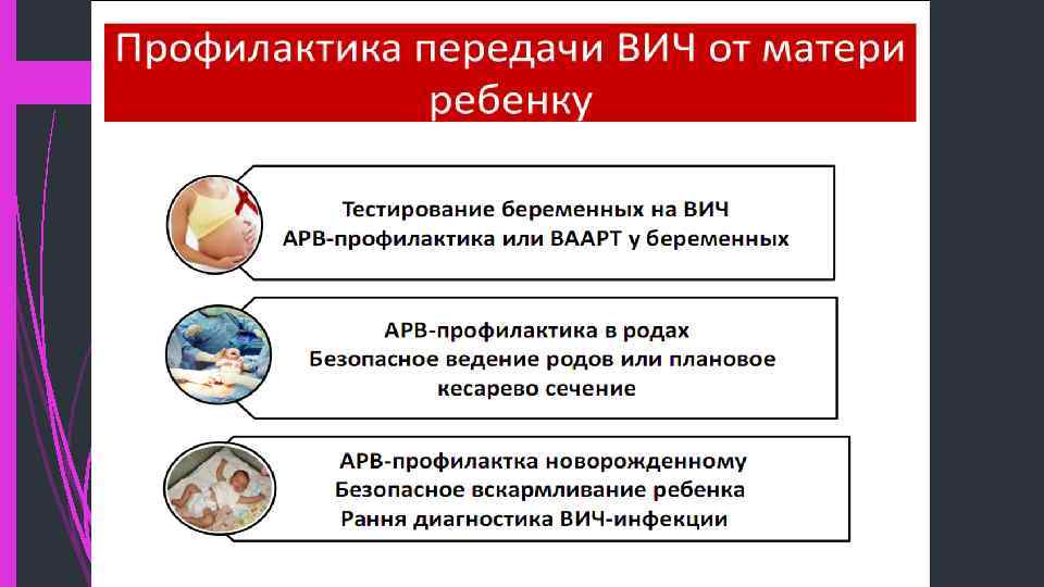 Антиретровирусная терапия и профилактика АРВ терапия Длительный (пожизненный) курс АРВ препаратов для лечения ВИЧ/СПИДа у матери и предотвращения ПМР. АРВ профилактика Курс АРВ препаратов, назначаемый женщине на период беременности и родов, для снижения риска передачи ВИЧ от матери ребенку.
