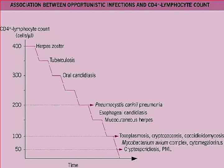 • Число лимфоцитов CD 4 < 50 мкл– 1 – Инфекционные осложнения: • Цитомегаловирусная инфекция • Диссеминированная инфекция, вызванная Mycobacterium avium-intracellulare – Неинфекционные осложнения: • Первичная лимфома ЦНС
