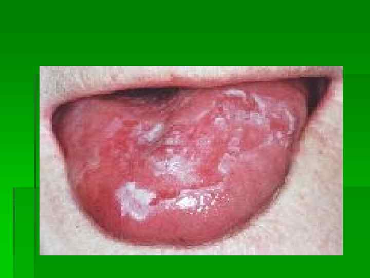 КАНДИДОЗ – у 58 -80% больных ВИЧ-инфекцией v Поверхностный кандидоз Ø Кандидоз полости рта Ø Оро-фарингеальный кандидоз Ø Кандидоз пищевода Ø Кандидоз кожи Ø Кандидозный вульвовагинит Ø Кандидозная паронихия, онихомикоз v Инвазивный кандидоз Ø Кандидоз пищевода + желудка, бронхов, кишечника, менингит, пневмония и др. Ø Диссеминированный (генерализованный)