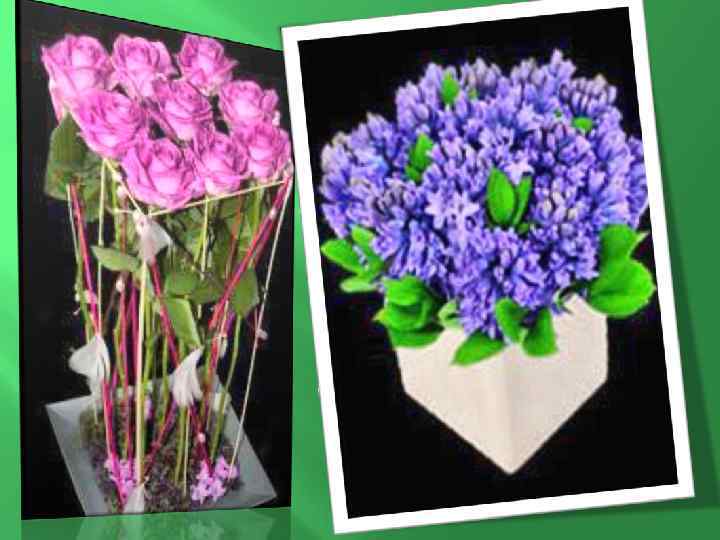 Формо-лінійний стиль За основу букета береться мінімум рослин. Збирається він у формі лінії, куба, кулі або якихнебудь інших геометричних тіл, крім кола. Для такого букета характерна асиметричність, але в рідкісних випадках допускається і симетрія.
