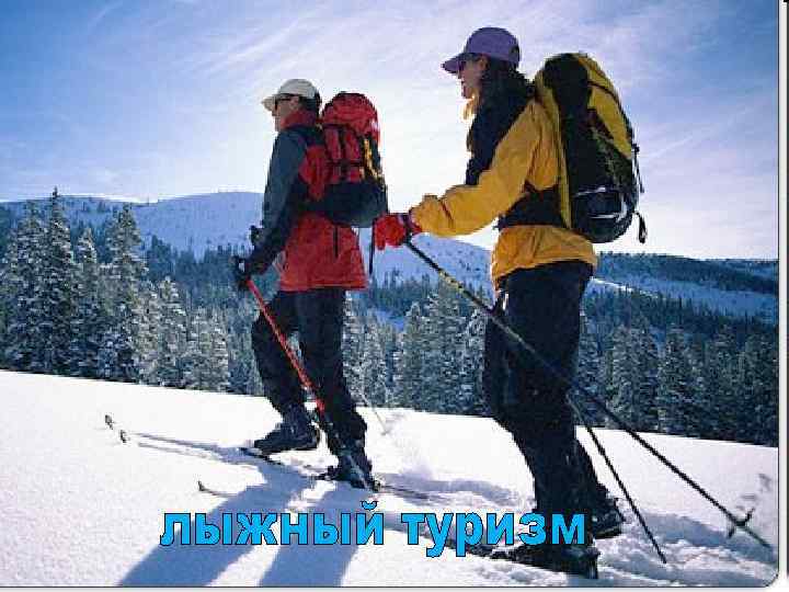 Лыжный туризм - путешествие совершаемое на лыжах. Использование лыж дает возможность сравнительно быстро и с меньшими энергозатратами передвигаться по снегу, чем пешком. Турист лыжник подобен пешеходному туристу, главное отличие заключается в том, что лыжные походы совершаются только зимой. А зимние условия - это холод. В зимних походах самая серьезная опасность - чрезмерная усталость, которая сопровождается потерей самоконтроля. Поэтому для таких походов большое значение имеют постепенное приобретение туристического опыта, целого ряда знаний и умений и индивидуальная сопротивляемость человека холоду.