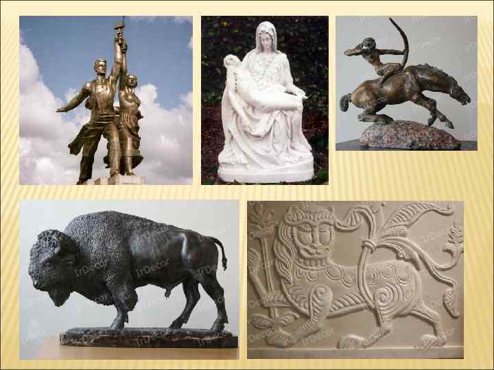 СКУЛЬПТУРА - вид изобразительного искусства, произведения которого имеют физически материальный, предметный объем и трехмерную форму, размещенную в реальном пространстве. Главными объектами скульптуры являются человек и изображения животного мира. Основными разновидностями скульптуры являются круглая скульптура и рельеф. Скульптура подразделяется: -на монументальную; -на монументально-декоративную; -станковую; -скульптуру малых форм.