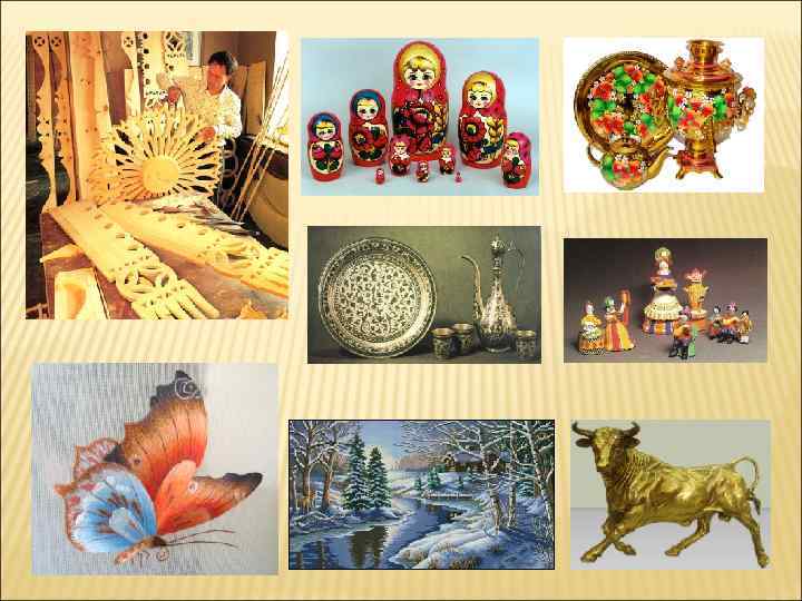ДЕКОРАТИВНОЕ ИСКУССТВО - создание художественных изделий, имеющих практическое значение в быту и отличающихся декоративной образностью. Декоративное искусство разделяется на : - монументально-декоративное искусство (витраж, мозайка, фреска) -декоративно-прикладное искусство (резьба, роспись, вышивка, литьё, чеканка) - оформительское искусство- временное художественное оформление домов, улиц, площадей, производственных территорий, садов и парков в дни общественных празднеств, а также оформление витрин, демонстраций и праздничных шествий, спортивных выступлений, парадов, различного рода экспозиций и выставок.
