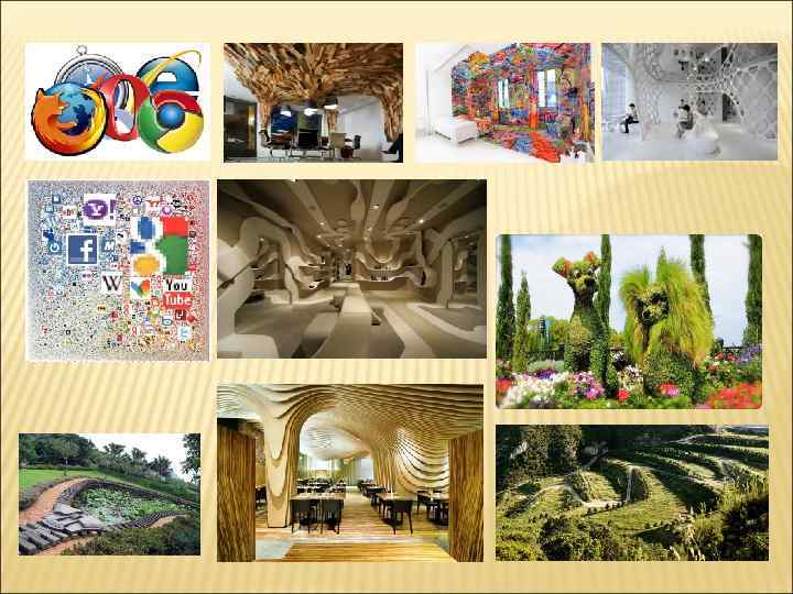 ДИЗАЙН - художественное конструирование предметного мира; разработка образцов рационального построения предметной среды. промышленный дизайн (проектирование производственного оборудования, средств транспорта, предметов мебели, бытовой техники, посуды и так далее) графический дизайн (разработкой фирменного стиля, рекламой продукции, упаковки) арт- дизайн (область деятельности на стыке предметного дизайна и современного искусства) дизайн одежды веб-дизайн (деятельность по созданию веб-интерфейсов для сайтов или приложений. Наиболее близко веб-дизайн связан с графическим дизайном) дизайн среды (можно разделить на две составляющих: проектирование внутреннего пространства (интерьеров помещений) и проектирование внешнего пространства (ландшафтный дизайн, дизайн городской среды).