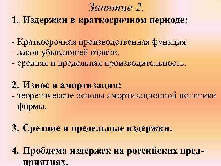 Экономические издержки в краткосрочный период в долгосрочный период Период фиксированных основных мощностей Изменение всех ресурсов и мощностей Изменение объемов производства и рамках постоянных мощностей Изменение не только объемов производства, но и размеров предприятия