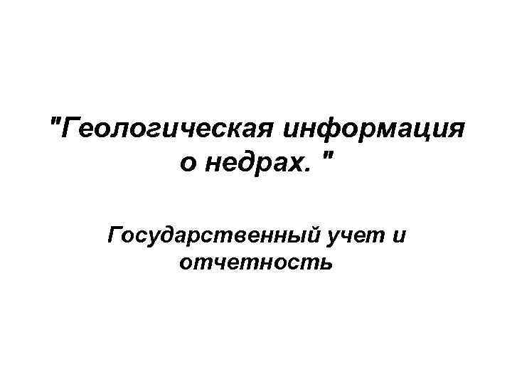"Геологическая информация о недрах. " Государственный учет и отчетность