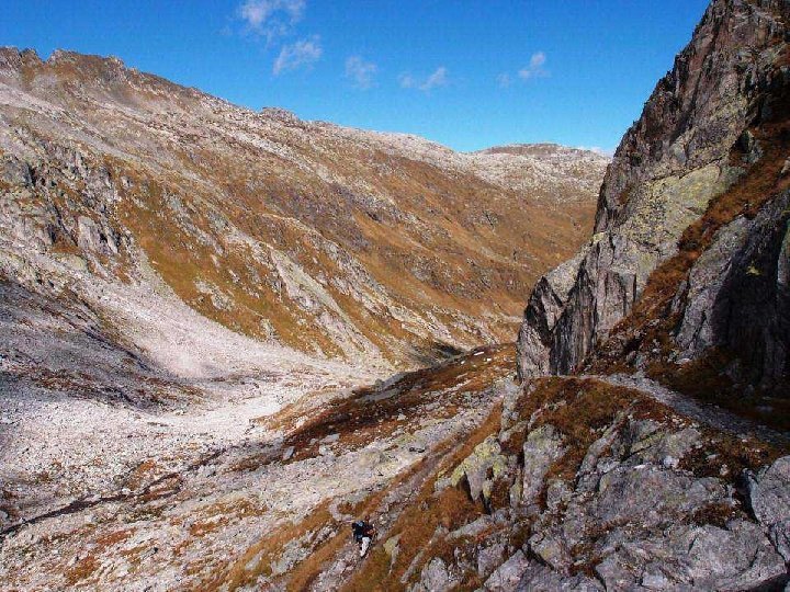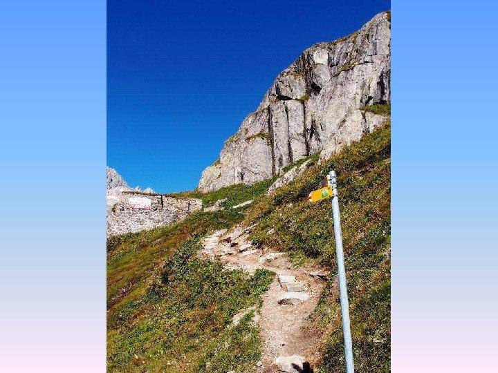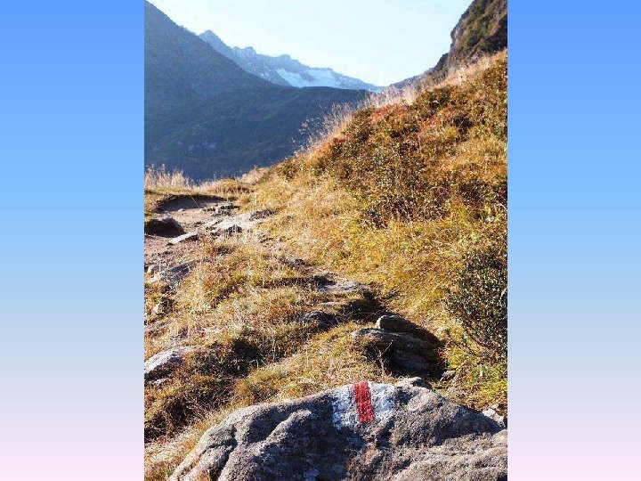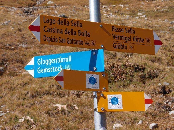 Etappe 2: Von der Vermigel. Hütte zum Gotthardpass Ausgangspunkt: Vermigel-Hütte Quellenweg: Vermigel-Hütte – Sunnsbiel – Summermatten – Sellapass (2’ 712 m). Möglichkeit zu einem kurzen Abstecher auf den Piz Giübin (2’ 776 m). Abstieg zum Sellasee (2’ 256 m) und weiter zum Gotthardpass (2’ 091 m). Marschzeit: zirka 5 Stunden Übernachtungsmöglichkeit: Albergo San Gottardo Ospizio Anschlüsse bei Tageswanderungen: Postauto nach Airolo oder Hospental/Andermatt.