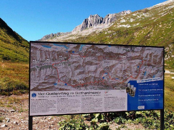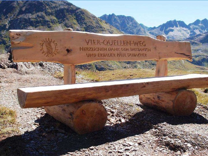 Die vier Flüsse Rhein, Reuss, Ticino und Rhone haben ihren Ursprung im Gotthardgebiet. Das hat Paul Dubacher aus Seedorf/UR auf die Idee des Vier. Quellen-Wegs gebracht. www. vier-quellen-weg. ch Belvedere am Furkapass 2’ 271 m. ü. M.