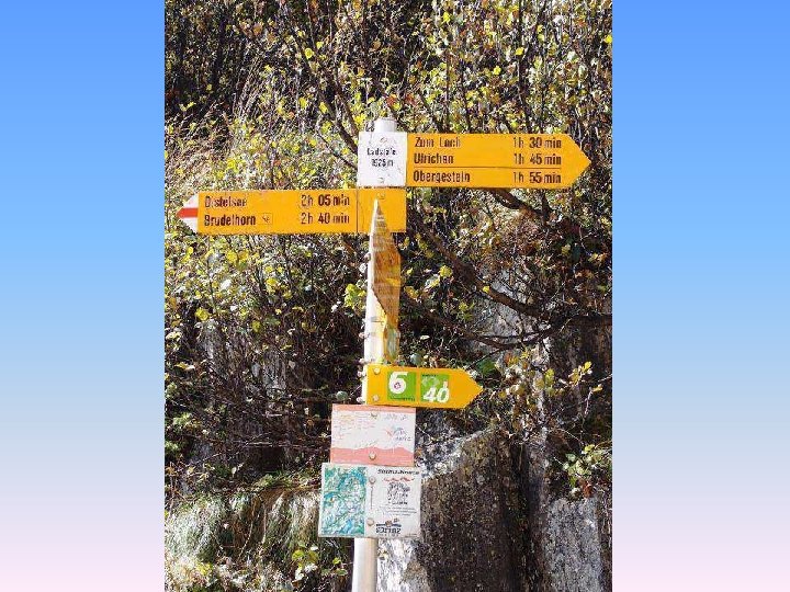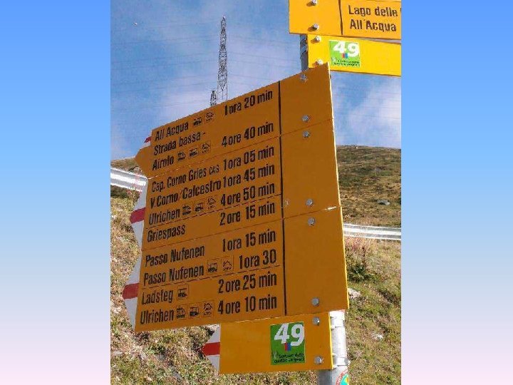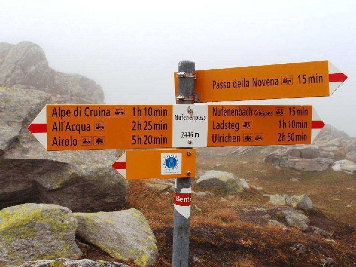 Etappe 4: Von der Piansecco. Hütte zum Quellgebiet des Ticino Ausgangspunkt: Piansecco-Hütte Quellenweg: Piansecco-Hütte – Alpe di Cruina (2’ 026 m) – Nufenenpass (2’ 446 m) – Postautohaltestellen Abzw. Griespass und Ladstafel – durchs Ägenetal hinunter nach Ulrichen (1’ 346 m) oder weiter bis Oberwald (1’ 368 m). Marschzeit: Ulrichen zirka 6, 5 Std. ; Oberwald: zirka 7, 5 Std. Übernachtungsmöglichkeit: Hotels in Ulrichen oder Oberwald Anschlüsse bei Tageswanderungen: Bahn oder Postauto ab Ulrichen oder Oberwald Richtung Brig/Andermatt.