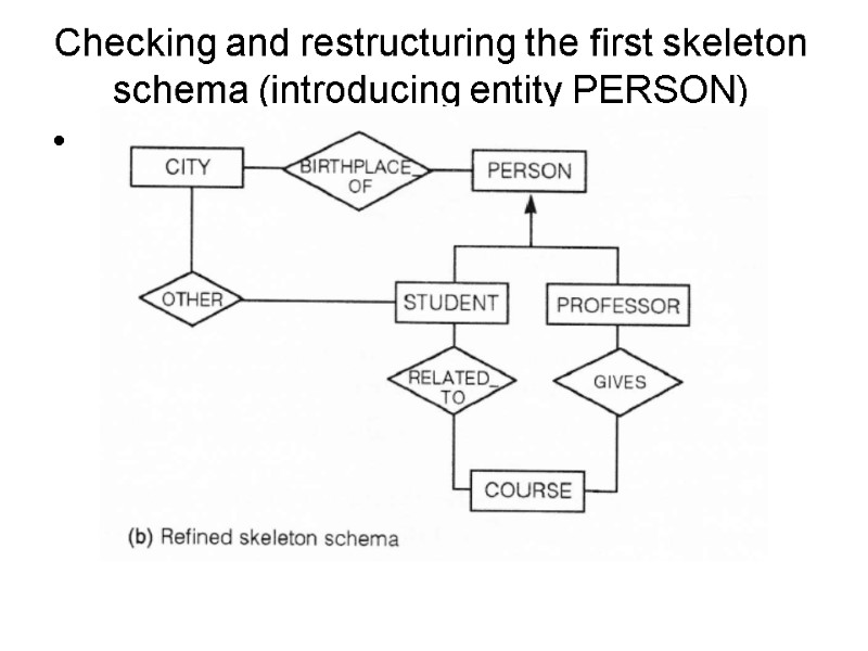 Checking and restructuring the first skeleton schema (introducing entity PERSON)