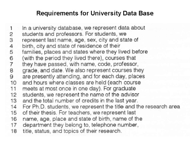 Requirements for University Data Base