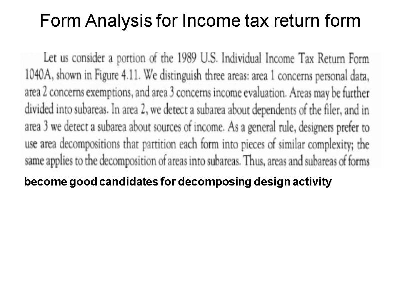 Form Analysis for Income tax return form become good candidates for decomposing design activity