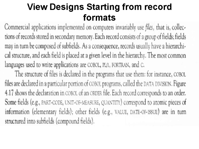 View Designs Starting from record formats