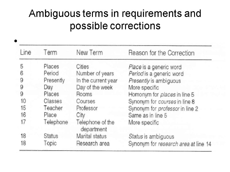 Ambiguous terms in requirements and possible corrections