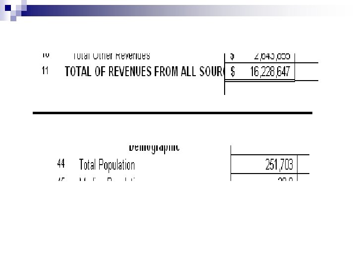 Revenues per Capita Total Revenues / Population = Revenues / Capita $16, 228, 647 251, 703 $64. 48 Capita