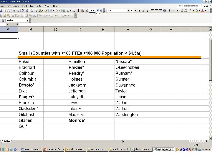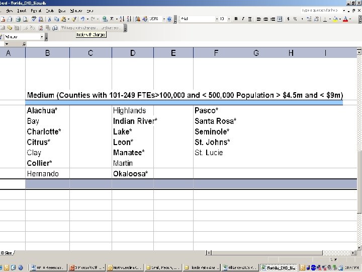 “The project is to develop and assess the viability of using a series of ratios to compare public health financial and administrative infrastructure information and then be able to compare the results to other CHDs/states. We all think this analysis will provide yet another resource for moving forward with making sound business decisions relative to public health. This may also play a role in a future credentialing process for local and county health departments”. Michael Sentman Assistant Deputy State Health Officer Florida Department of Health
