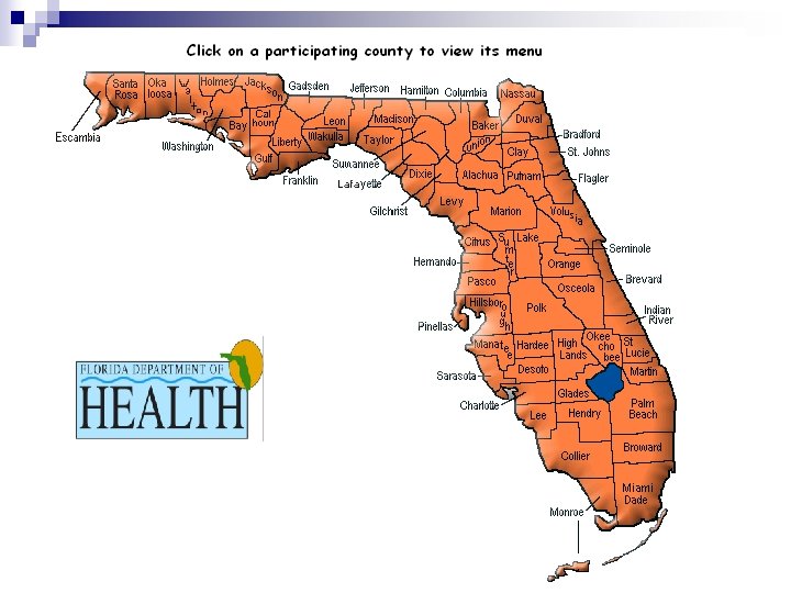 Florida Department of Health n 67 County Health Departments $834 M CHDs Statewide ¨ $208 B Department Wide ¨ n Co-managed under the State and Local Board of County Commissioners n All State Employees n Single Accounting System ¨ Unified chart of accounts