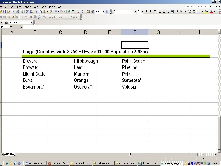 Florida Advantages: n n We use a similar codes, chart of accounts, accounting structure, format, etc. Most all financial data was in one data base We had access to the data If we pulled the data we would have control on how it was sorted ¨ Consistently right or consistently wrong n n Workload was put on limited staff Instructions were clear among those involved
