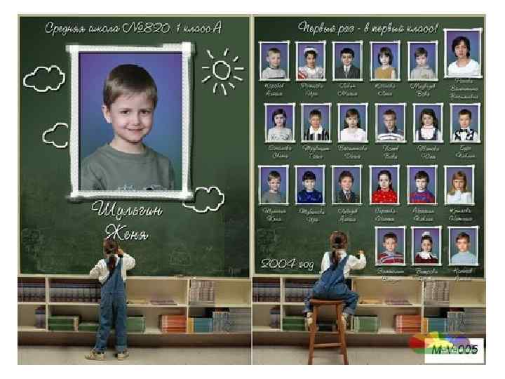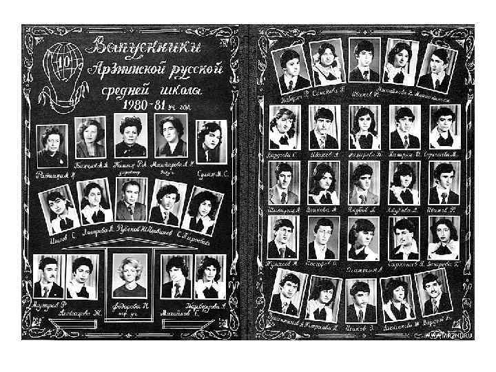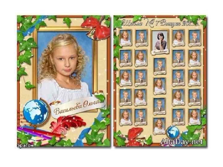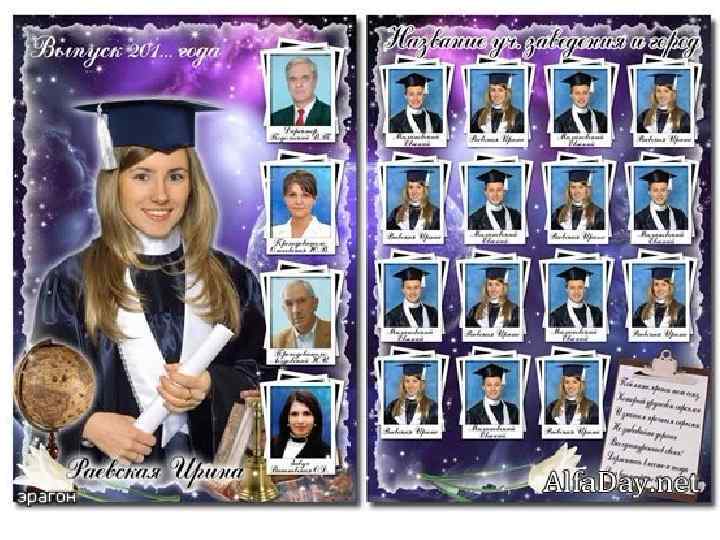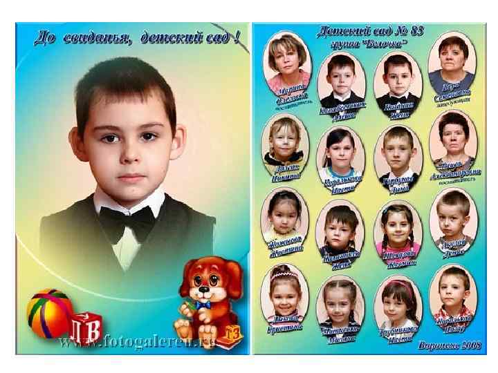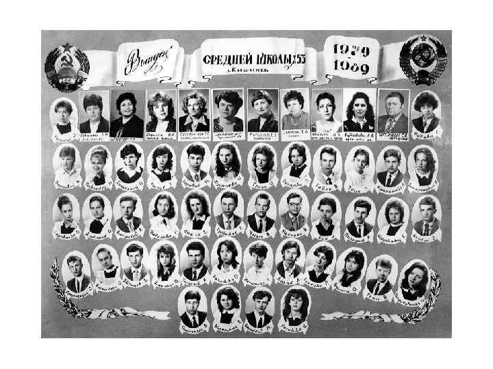 Классическая виньетка формируется из двух частей — одного большого портретного снимка слева и много небольших фотографий справа (преподаватели/воспитатели/начальники и сокурсники/одноклассники/сослуживцы и т. д. ). Также на виньетке размещаются название учреждения учебы/работы и год выпуска (ну или просто год фотографирования). Все фотографии, как правило, подписаны.