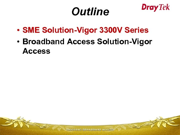 Outline • SME Solution-Vigor 3300 V Series • Broadband Access Solution-Vigor Access
