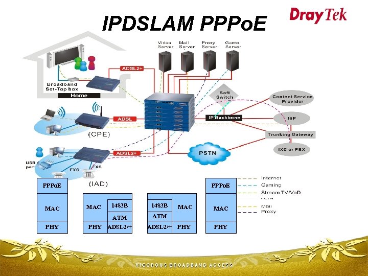IPDSLAM PPPo. E MAC PHY PPPo. E MAC 1483 B ATM PHY ADSL 2/+ 1483 B MAC ATM ADSL 2/+ PHY
