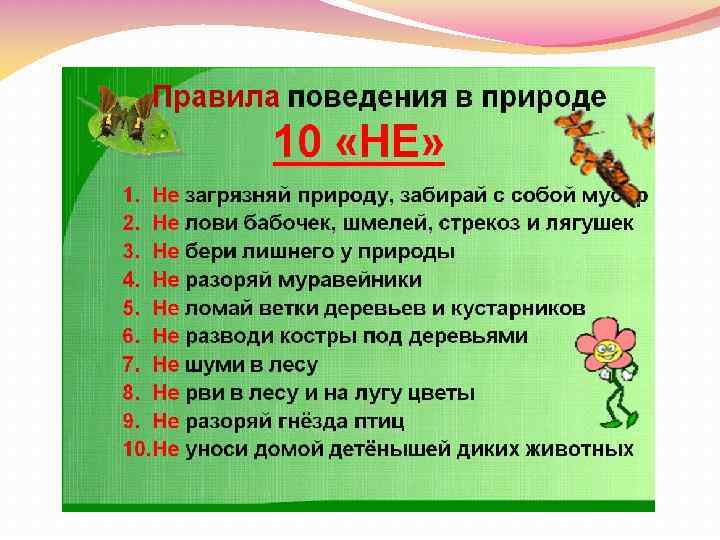 От каких привычек может отказаться человек, чтобы сохранить природу! - загрязнять акваторию и водоемы! - разжигать без причины костры! -курить на природе!