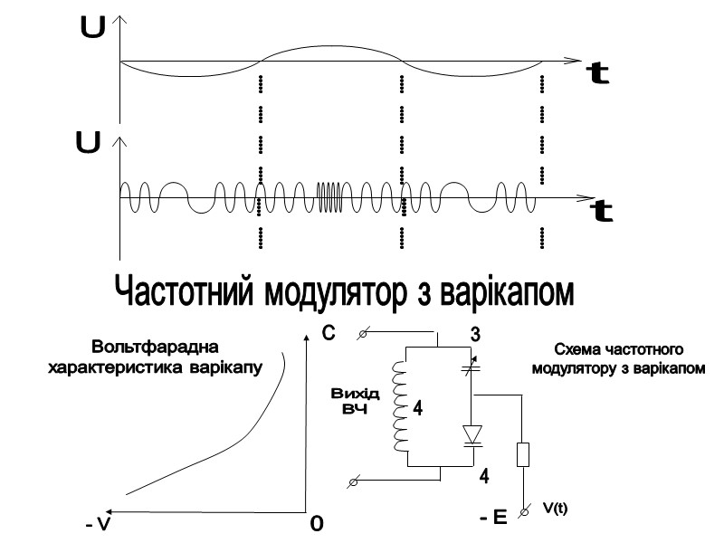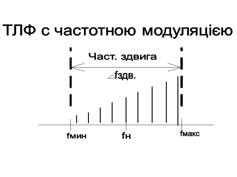 ТЛФ ЧМ (F3) Основний спосіб формування – вплив на частоту автогенератора по закону первинного НЧ сигналу (модулюючої функції). В якості керуємих елементів використовуються варікапи (конденсатор, керуємий зовнішньою НЧ напругою) або польові транзистори, які мають нелінійну характеристику.
