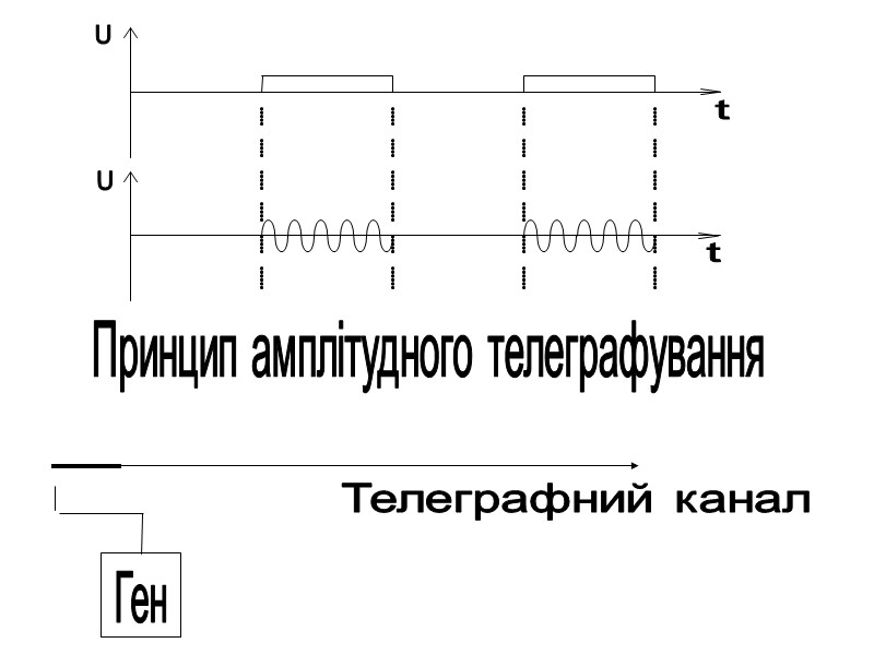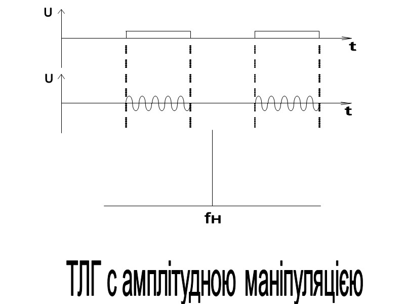 Телеграфний радіосигнал з амплітудною маніпуляцією або телеграфією - ТЛГ АТ (А1) Первинний дискретний сигнал впливає на амплітуду ВЧ коливання.
