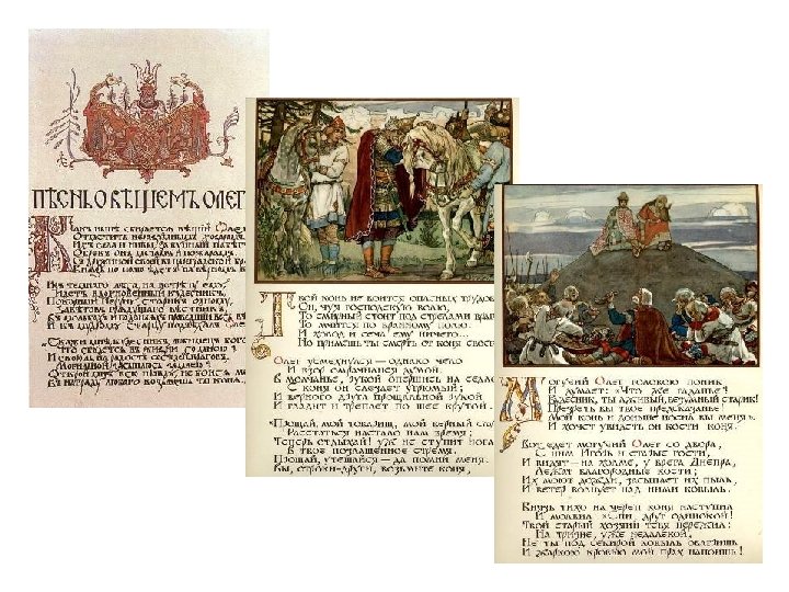 Озаглавьте иллюстрации 1 – 2 строчками из «Песни о вещем Олеге»