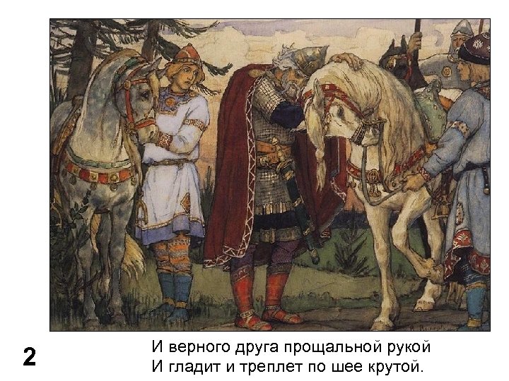 2 И верного друга прощальной рукой И гладит и треплет по шее крутой.