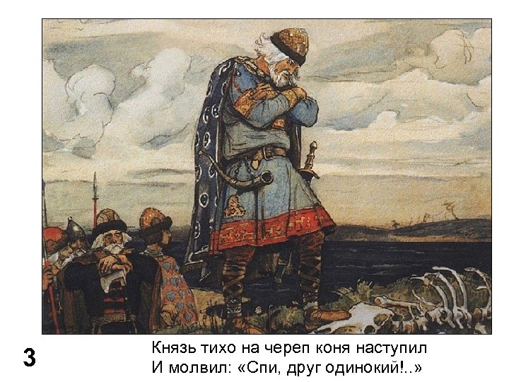 3 Князь тихо на череп коня наступил И молвил: «Спи, друг одинокий!. . »