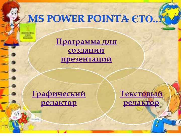 Программа для созданий презентаций Графический редактор Текстовый редактор