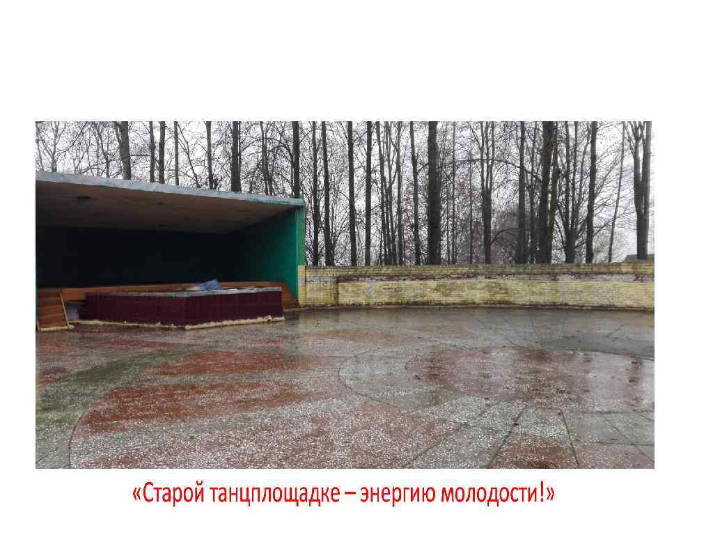 Для этого необходимо: в апреле - организовть работу по покрытию бетонного основания; - произвести монтаж скейтоборудования; в мае – отремонтировать сцену, размером 9/6 метров, и бытовое помещение