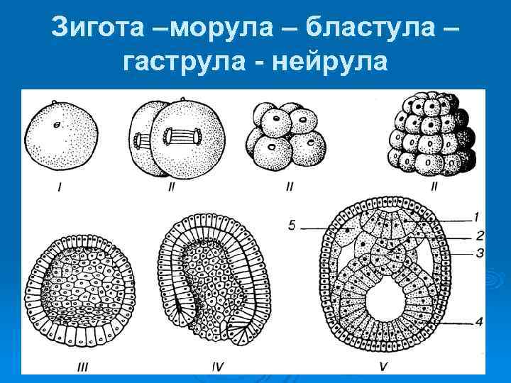 Зигота –морула – бластула – гаструла - нейрула