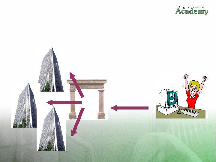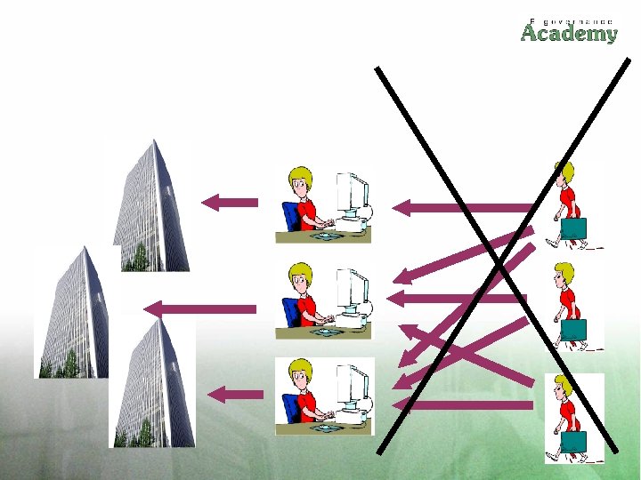 Державна канцелярія / Міністерство Центр е-врядування (офіс CIO) Робочі групи міністерств з IКT Робоча група IКT з регіонального розвитку • Регуляторні ініціативи • Бюджетне планування е-врядування • Контроль за виконанням • Угоди зі структури сумісності Міністерства Ініціативи реформ Бюджет IКT CIO Установа, яка втілює е-врядування IT Businesses IT-бізнеси Проекти закупівель, нагляд, реалізація системи обслуговування Навчання користувачів