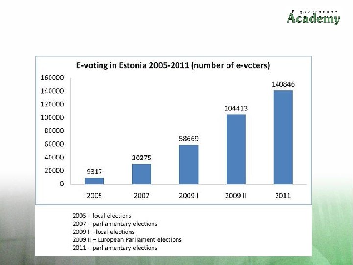 Приклад е-участі: е -голосування в Естонії (140 846 е-виборців у 2011!)